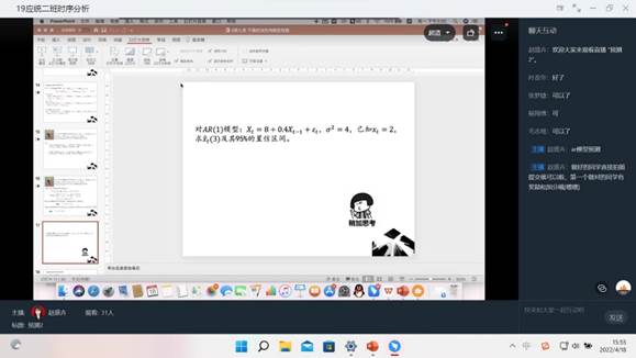 从课堂授课内容到课后互动反馈,统计系将全方位以实际行动确保疫情防控期间的线上教学工作与线下教学同质等效。疫情当前,阻挡不住全体学生求知的步伐;众志成城,教师在云端中坚守着园丁的初心使命。